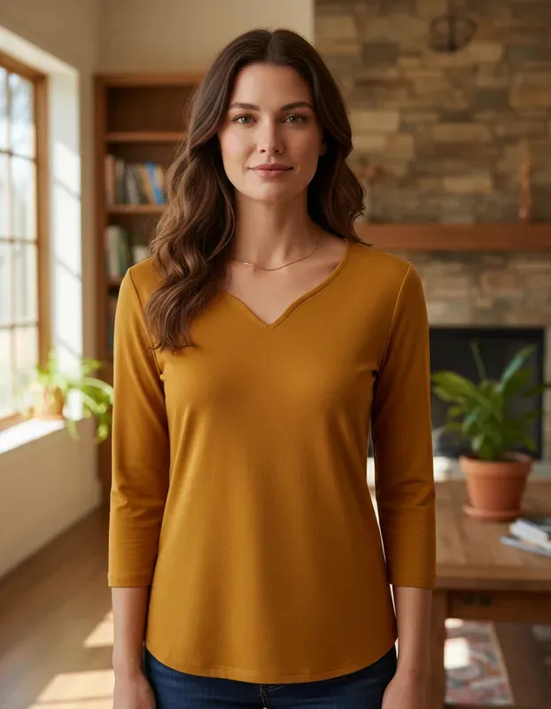 Remeras escote semi corazón, en algodón de hermosa calidad. Escote reforzado para evitar deformaciones. Escote semi corazón