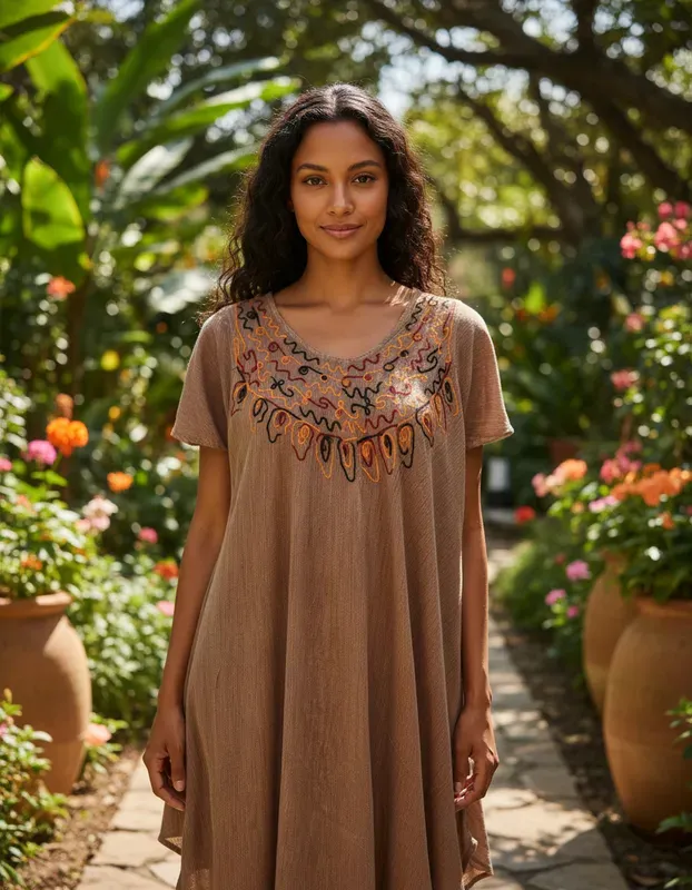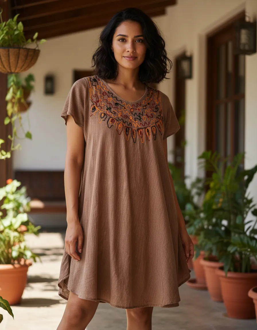Extra frescura! Vestidos bordados de la India, confeccionados en viscosa, se adaptan a diferentes tipos de cuerpos gracias a la tela fluída y su corte evasé Van perfecto de M a Xl, medidas de la prenda, contorno busto 130 cm, cadera 190 cm, largo 113 cm
